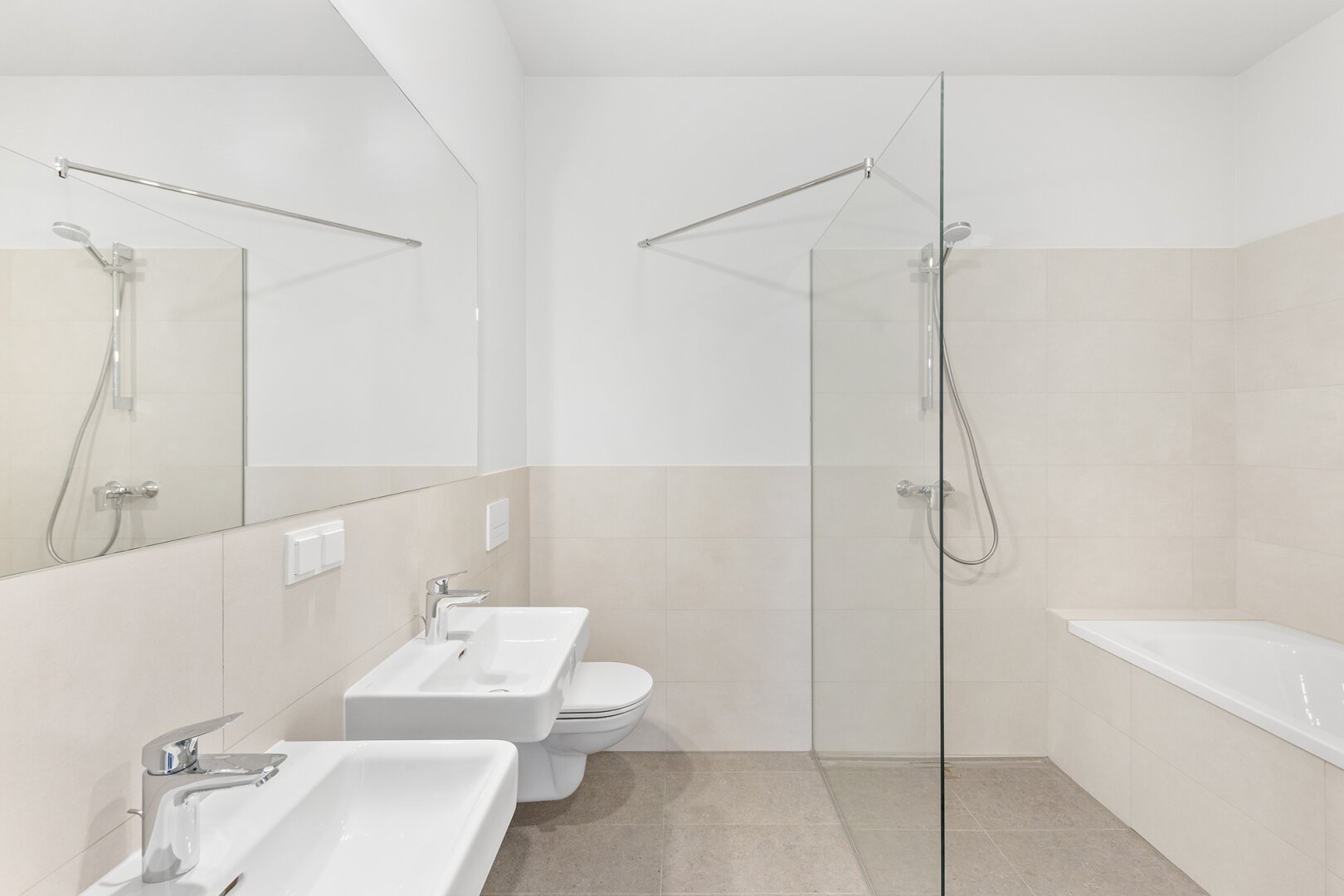 * Großzügige Sanitärbereiche (Feinsteinzeug 60x30/60x60)