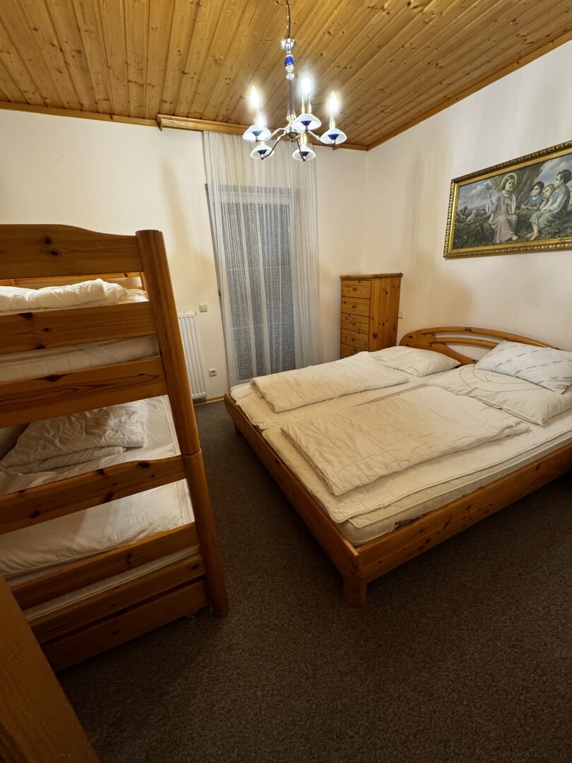* 1 Schlafzimmer (derzeit mit Doppelbett und Stockbett ausgestattet)
